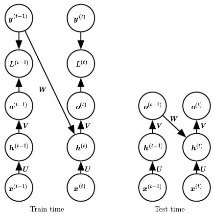 Teacher forcing is a procedure in which during training the model receives the ground truth output as input at time . The maximum likelihood specifies that during training, rather than feeding the model’s own output back into itself, it should be fed with the target values specifying what the correct output should be.