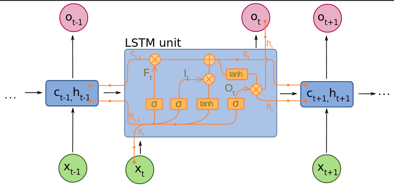 A common LSTM unit is composed of a cell, an input gate, an output gate and a forget gate: