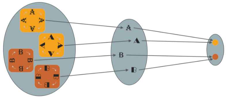 A map identifies two neighborhoods and of its input domain if it maps them to a common subset of its output domain. In this case we also say that and are identified by . For example, the four quadrants of 2-D Euclidean space are regions that are identified by the absolute function : . A map that identifies two subsets and can be considered as an operator that folds its domain in such a way that the two subsets and coincide and are mapped to the same output. Each hidden layer of a deep neural network can be associated with a folding operator. Each hidden layer folds the space of activations of the previous layer.