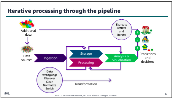 Another key characteristic of deriving insights by using your data pipeline is that the process will almost always be iterative. Here, after reviewing those results, they determined that additional data could improve the detail available in their result, so an additional data source was tapped and ingested through the pipeline to produce the desired result.