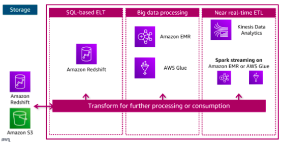 - Pull data from an Amazon S3, Amazon Kinesis, or JDBC source.