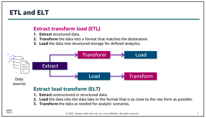 - Perform transformations and load the processed data into durable storage, where it can be accessed. You might use a transform/load approach, where the majority of transformations occur prior to loading into the storage layer. Or, you might use the load/transform approach by performing minimal transformations before loading the raw data into your storage layer.