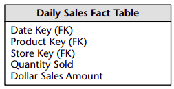 A fact table is the primary table in a dimensional model where the numerical performance measurements of the business are stored. We strive to store the measurement data resulting from a business process in a single data mart. We use the term fact to represent a business measure. We can imagine standing in the marketplace watching products being sold and writing down the quantity sold and dollar sales amount each day for each product in each store. A measurement is taken at the intersection of all the dimensions (day, product, and store). This list of dimensions defines the grain of the fact table and tells us what the scope of the measurement is.