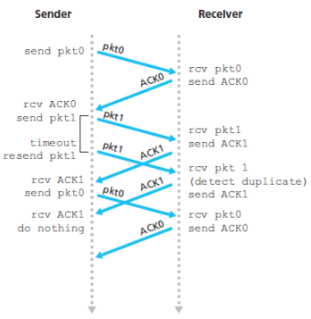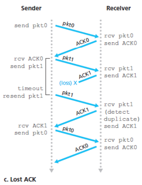 - Sender simply re-sends the current data packet when it receives a garbled ACK or NAK packet, however introduces duplicate packets into the sender-to-receiver channel, fundamental difficult is that cannot know a prior whether an arriving packet contains new data or is a re-transmission.