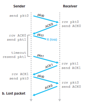 When underlying channel can lose packets, two additional concerns must now be addresses by the protocol, how to detect packet loss and what to do when packet loss occurs.