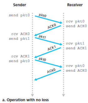 - If a packet with sequence number is received correctly and is in order that is, the data last delivered to the upper layer came from a packet with sequence number , the receiver sends an ACK for packet and delivers the data portion of the data to the upper layer.
