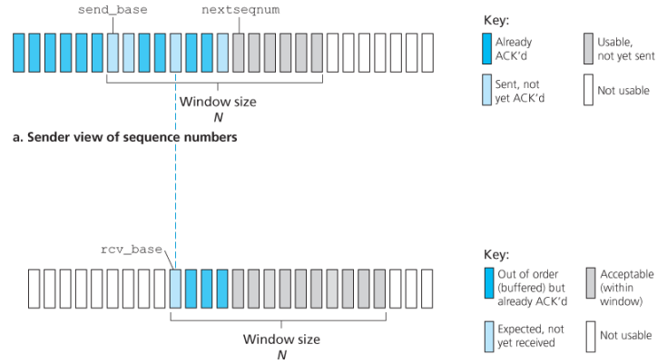 If we define to be the sequence number of the oldest acknowledged packet and be the smallest unused sequence number i.e. the sequence number of the next packet to be sent then four intervals can be identified.