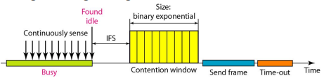 Inter-frame space: Collisions are avoided by deferring transmission even if the channel is found idle. When channel is found idle, the station does not send immediately, it waits for a period of time called IFS. After IFS time if the channel is still idle, the station still needs to wait a time equal to the contention time. In CSMA/CA, the IFS can also be used to define the priority of a station or a frame. A station having shorter IFS has higher priority.